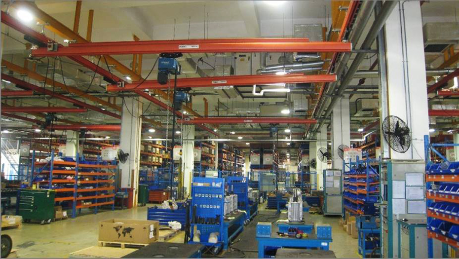 SKBK单/双梁悬挂起重机精度高,滚动表面平滑,减少了小车滚轮的阻力,适用性广,可以应用在很多物料搬运环境。